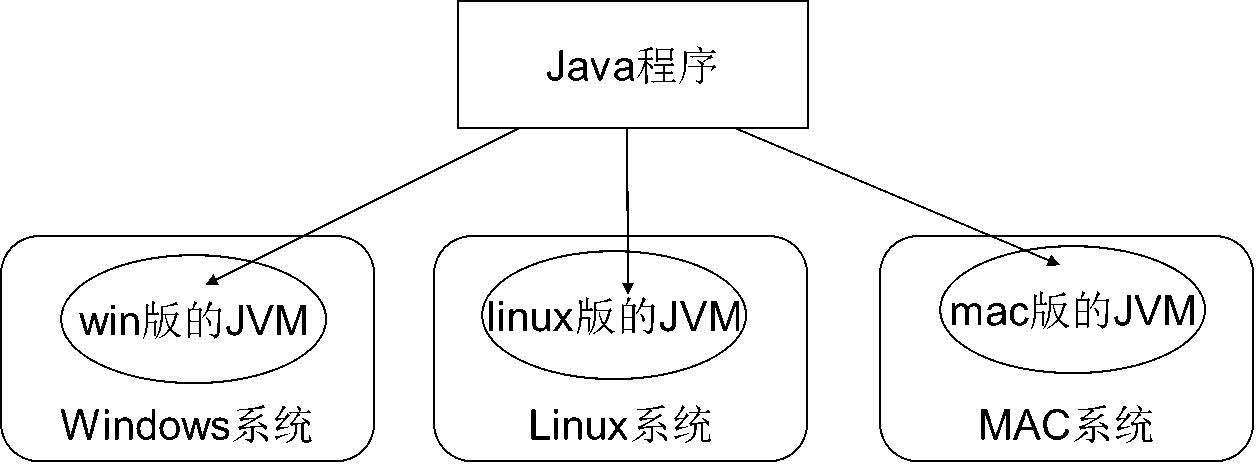 只要在需要运行Java应用程序的操作系统上,先安装一个Java虚拟机(JVM Java Virtual Machine)即可。